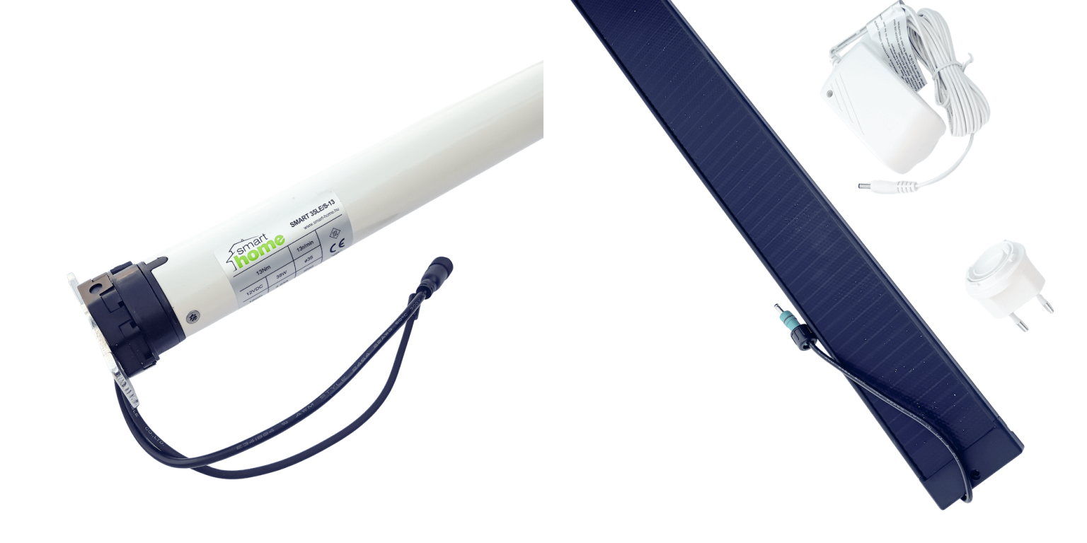 Smarthome napelemes BIDI motor, beépített rádióvevővel és akkumulátorral. A beépített akkumulátornak köszönhetően egy feltöltéssel akár 5 hónap üzemidő lehetséges (150 le-fel ciklus).